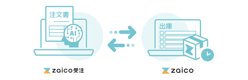 zaicoと連動することで、受注から在庫確認、出庫指示までの一連の業務を効率化します。