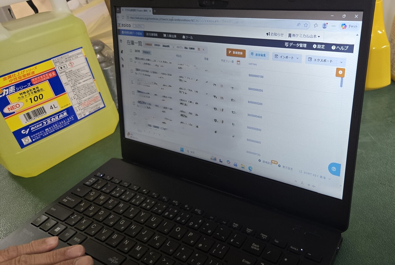 “中性塩電解処理技術のパイオニア”として、広島県でステンレスの溶接焼け・さび取りと電解研磨用資材を製造する株式会社ケミカル山本様。以前はエクセルで製品の在庫管理をしていましたが、「複数人で同時に作業できない」「ミスの原因を追えない」といった非効率さを感じていました。