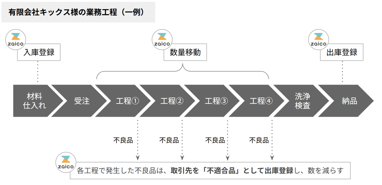 • 不良品の数も「廃棄」としてzaicoで出庫登録することで、正しく管理できるようになった