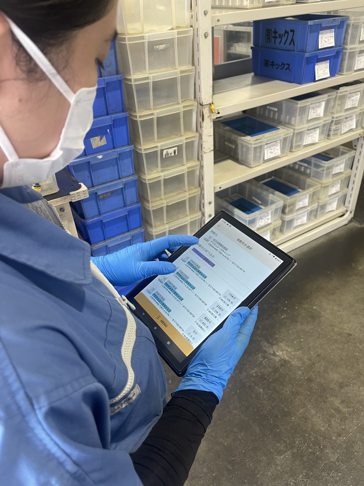 今は、各工程の担当者がその場で在庫数を入力し、管理者側はタブレットで全体の流れを確認できます。在庫状況を全社で共有できるようになり、発注タイミングも最適化されました。