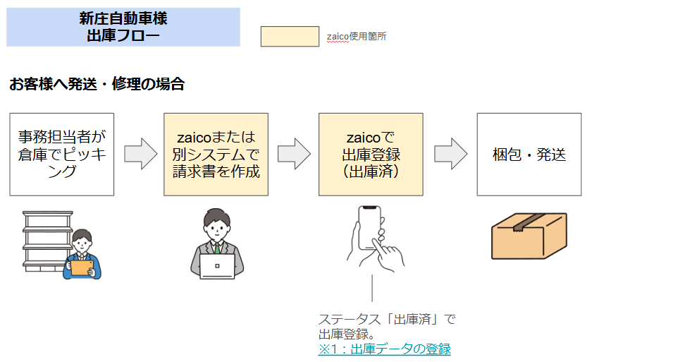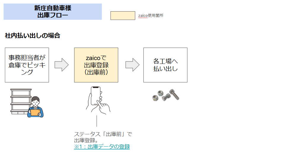 部品の入庫から、各工場への払い出し・お客様への発送をzaicoで管理