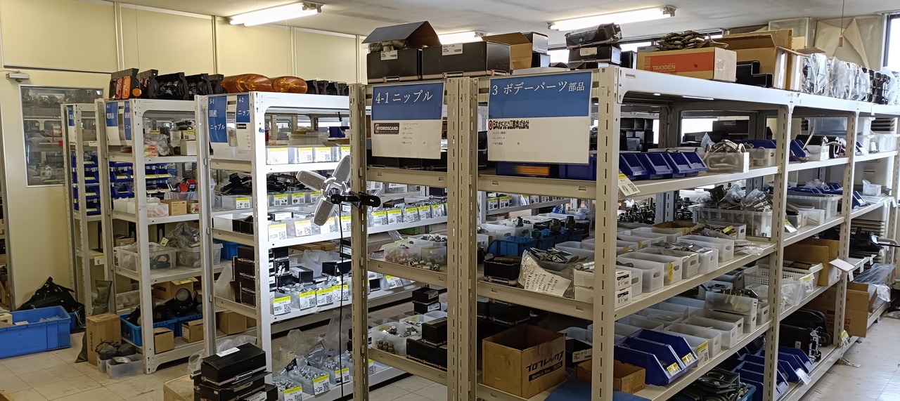 - 管理している物品:クレーンパーツ、トラックパーツ、ボルト、その他油圧機器や電装品など