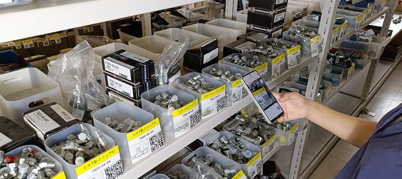一番大きな効果は「部品マスタ」を整備できたこと。棚に貼ったQRコードで入出庫管理、資産計上もできるようになった