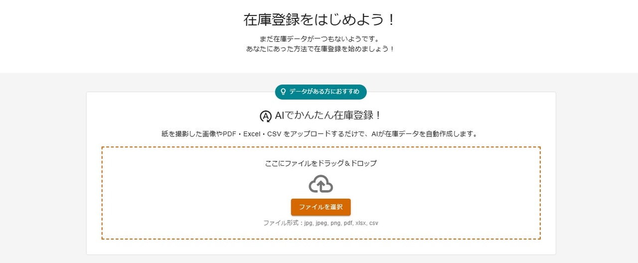 - 在庫データ1件ごとに画像やPDFなどのファイルを登録