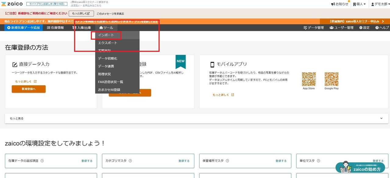 zaicoのトライアル前にインポートの準備をしよう