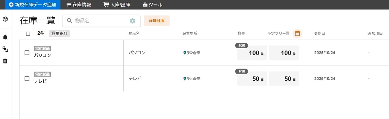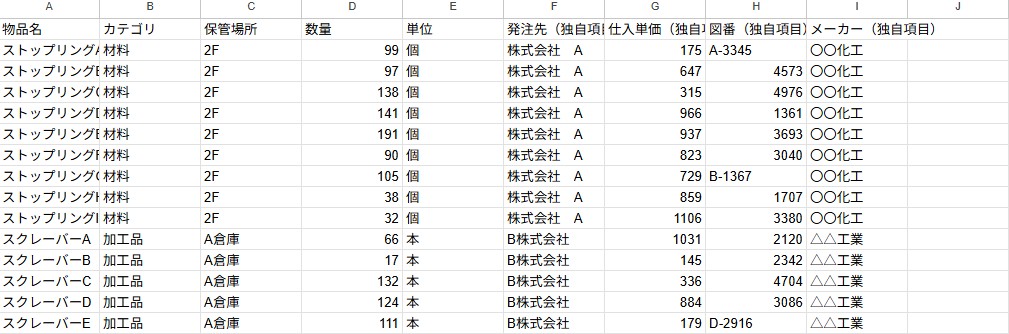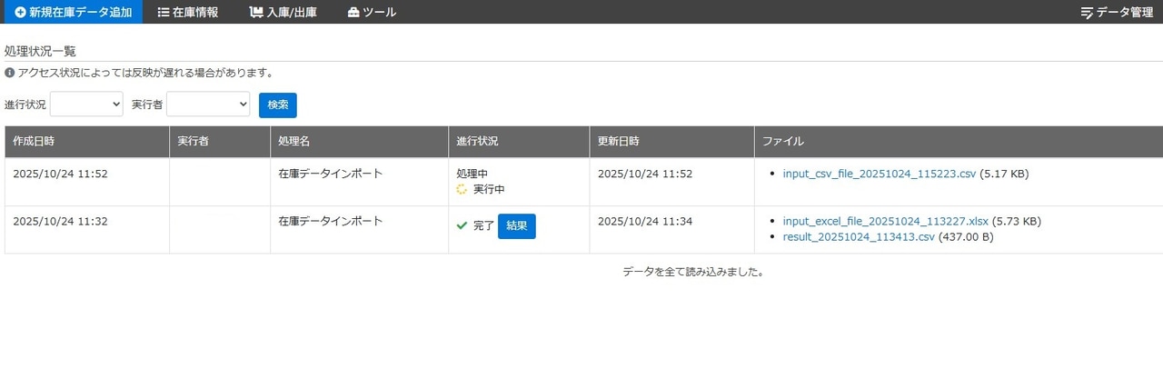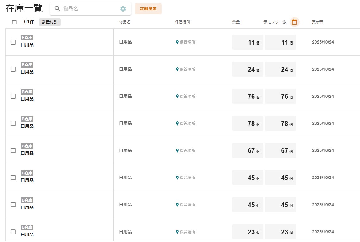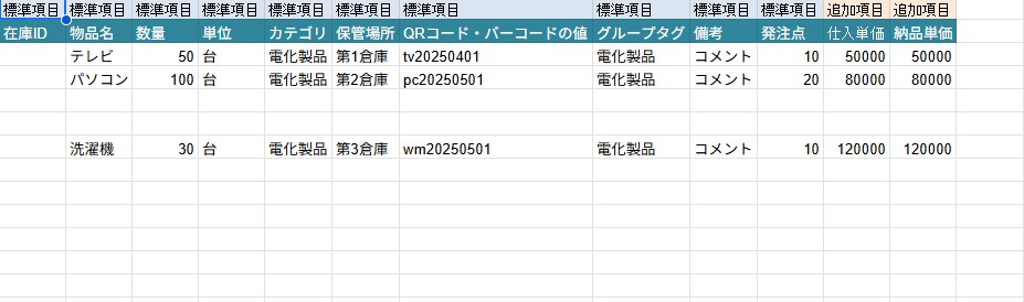 在庫一覧にCSVファイルのデータが反映されていれば、CSVインポートの完了です。
