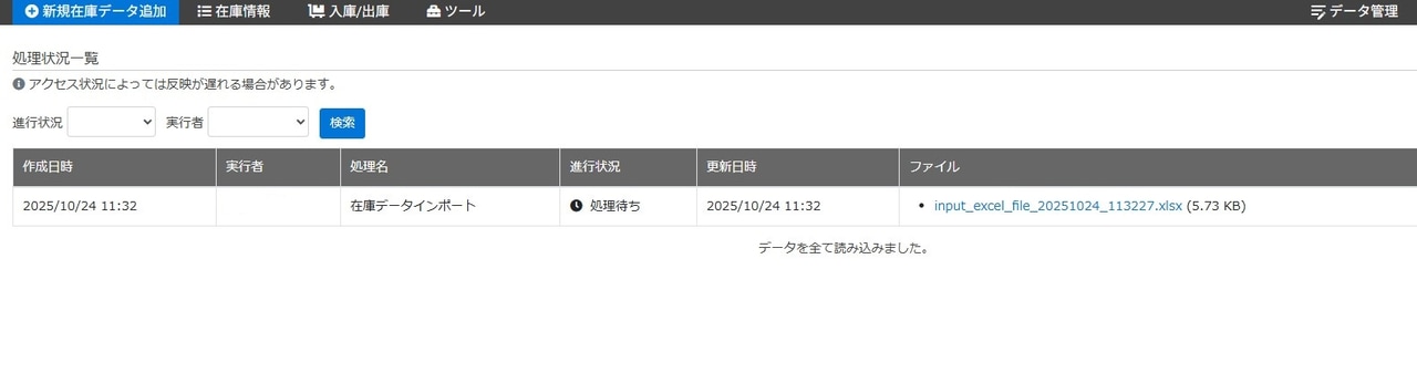 在庫一覧にエクセルファイルのデータが反映されていれば、エクセルインポートの完了です。